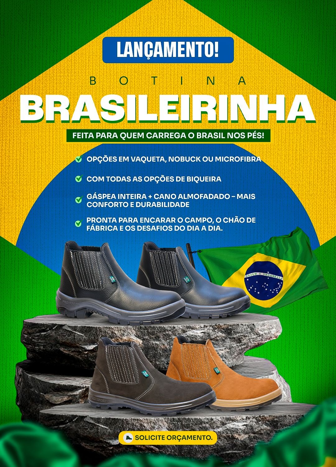 portfólio, que se estende desde a Botina de Elástico até o Coturno Militar.